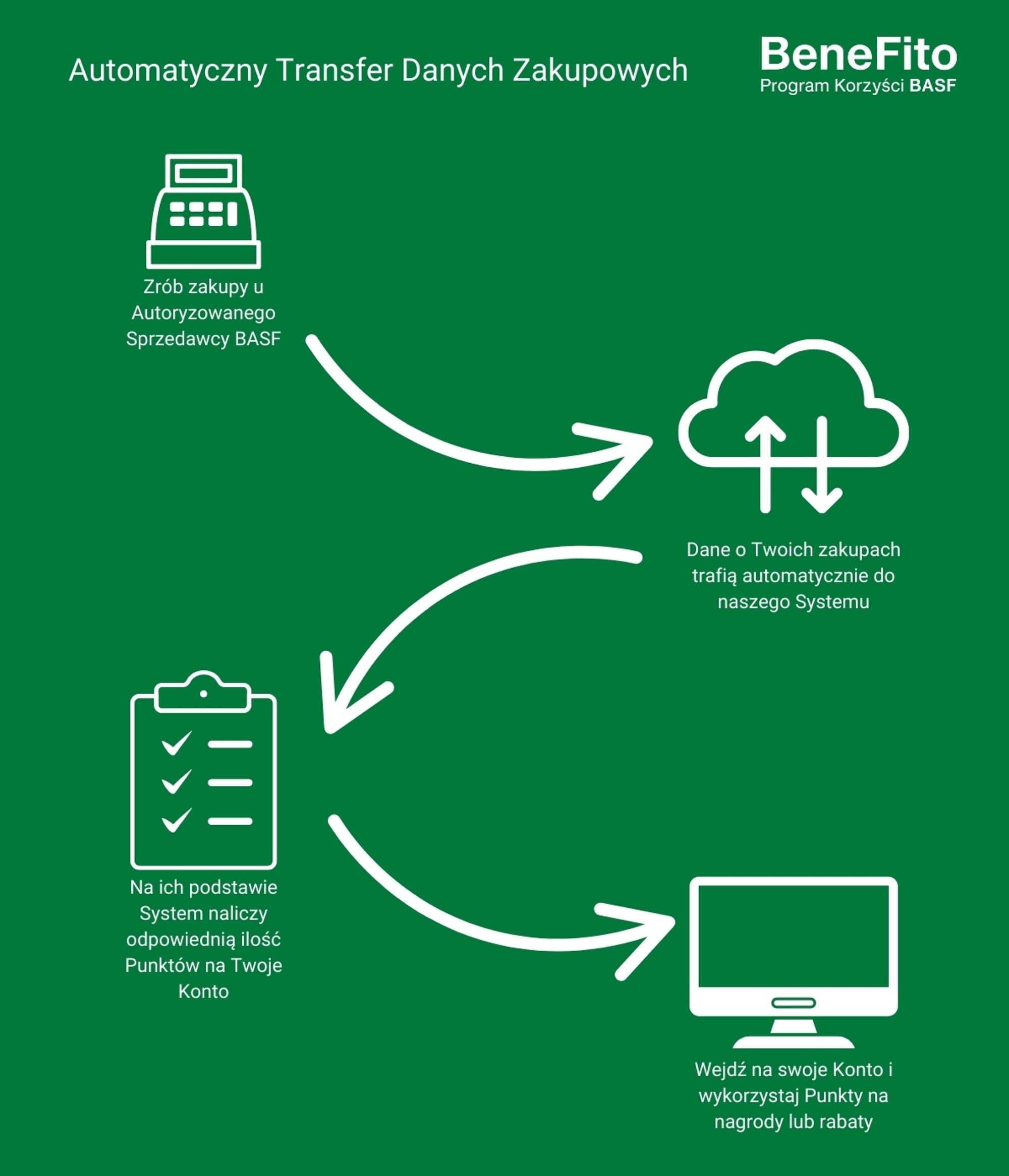 Program BeneFito umożliwia wyrazenie zgody na automatyczny transfer danych zakupowych, eliminując konieczność ręcznego dodawania dowodów zakupu. Każda transakcja dokonana u Autoryzowanych Sprzedawców jest automatycznie rejestrowana w systemie, który nalicza Punkty za zakupione produkty na Konto Uczestnika.
