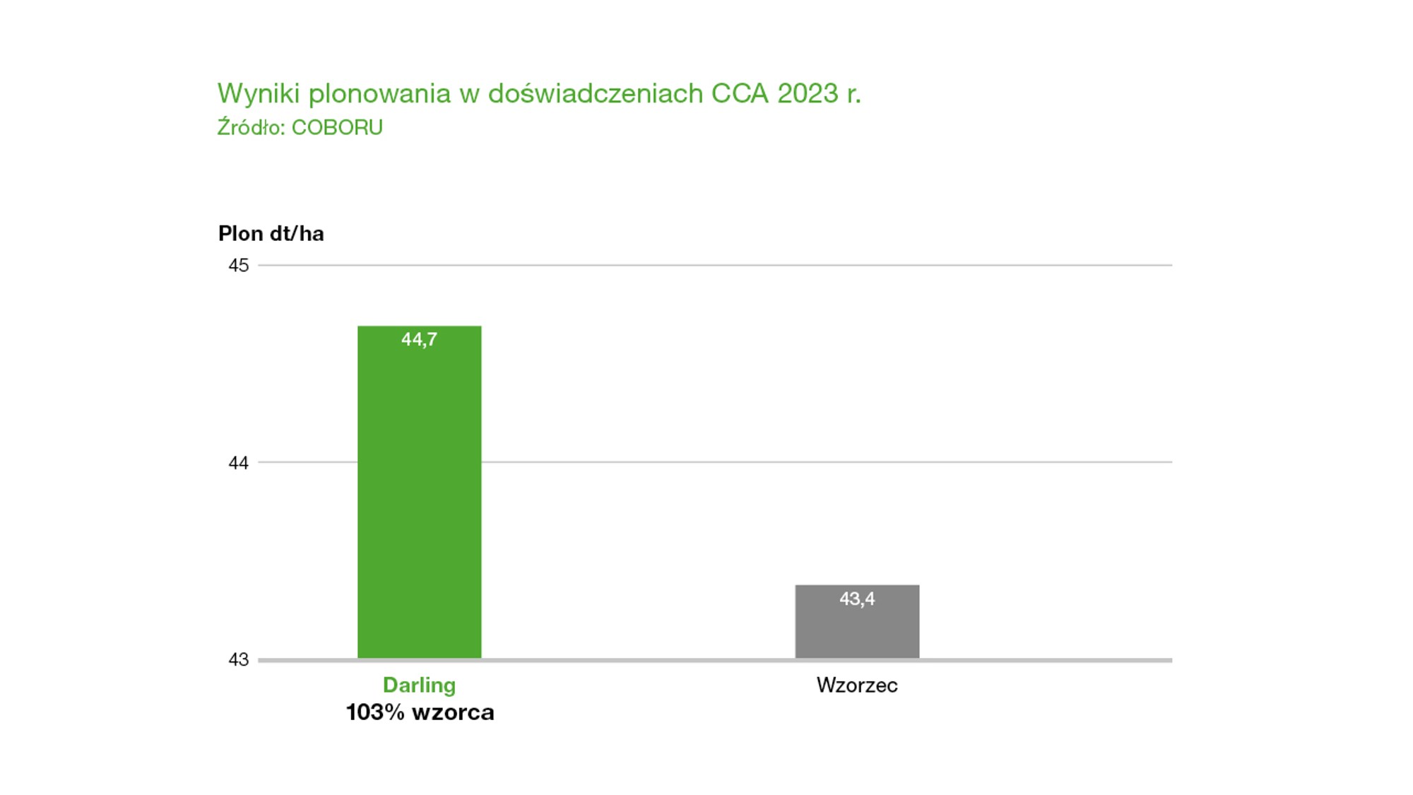 InVigor® Darling wyróżnia się doskonałym wigorem początkowym, co stanowi istotny czynnik wpływający na rozwój rośliny od samego początku cyklu uprawy. Ponadto odmiana ta jest odporna na osypywanie oraz na wyleganie, co przekłada się na lepszą kondycję roślin i jakość zebranego plonu.